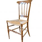 Le sedie Chiavarine nascono a Chiavari, in Italia, e rappresentano una delle eccellenze del design italiano. In particolare, questo modello “Spadina” si distingue per lo schienale alto con listelli verticali sagomati, che richiamano la forma di una spada, donando eleganza e riconoscibilità al pezzo.