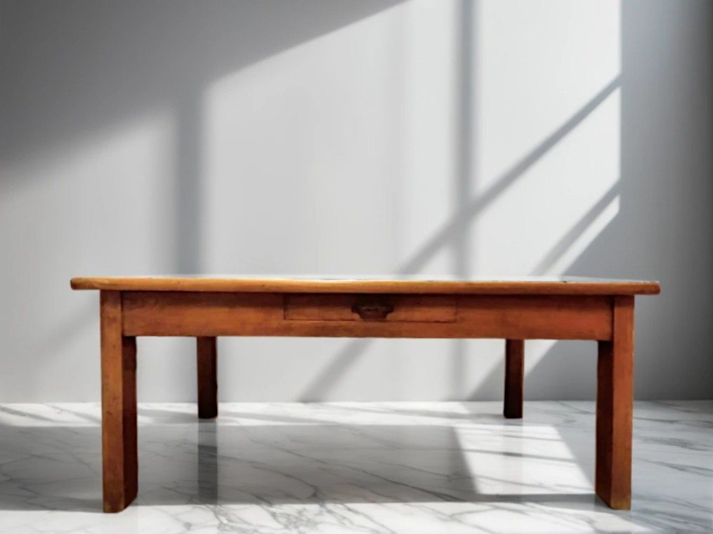 Splendido e solido tavolo romagnolo degli anni ’30/’40, realizzato interamente in olmo massiccio.