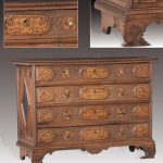 In Noce, con decorazioni ad intaglio sul massello e bugne con intarsi.