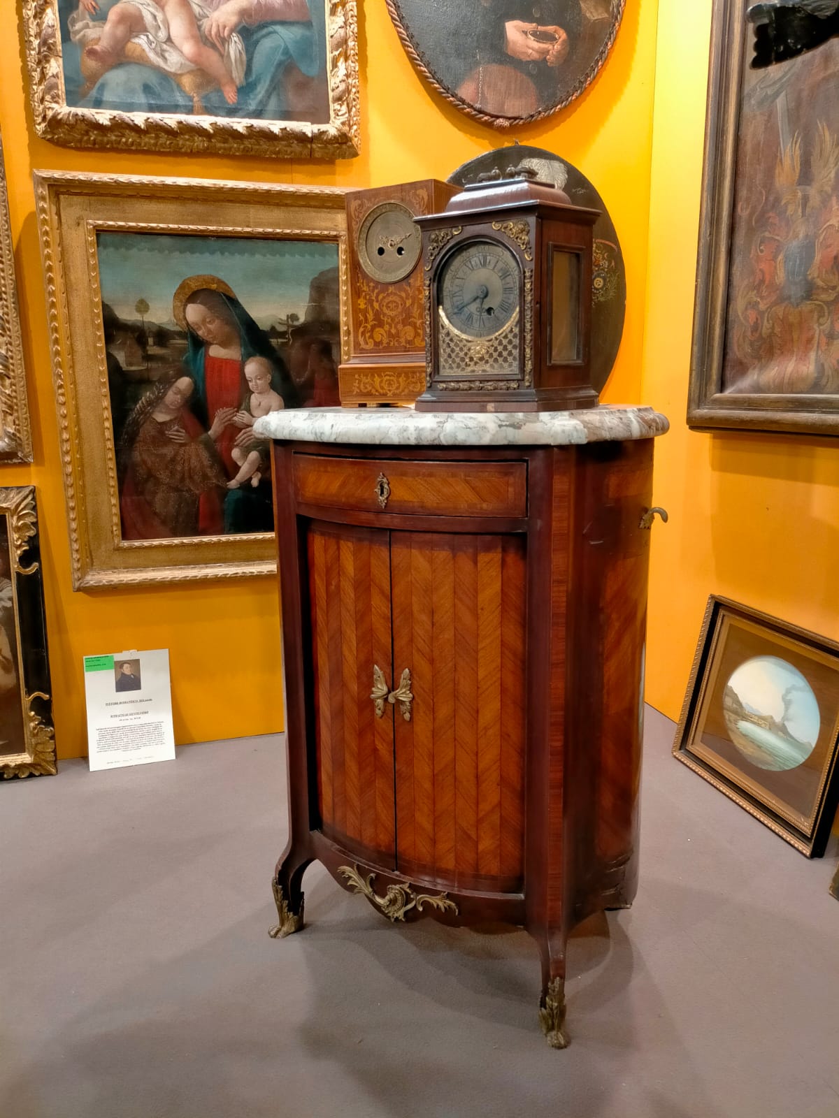 Stato di conservazione: eccellente, con conservazione integrale della struttura lignea, delle impiallacciature e degli elementi in bronzo dorato.