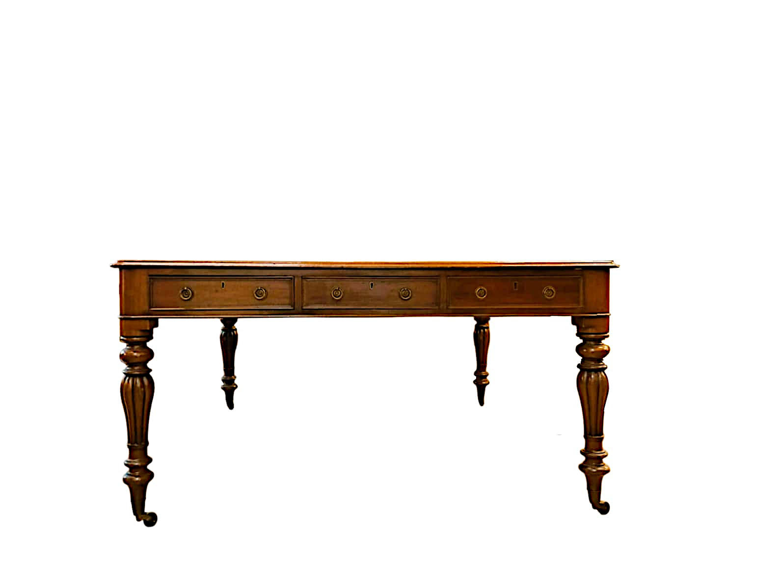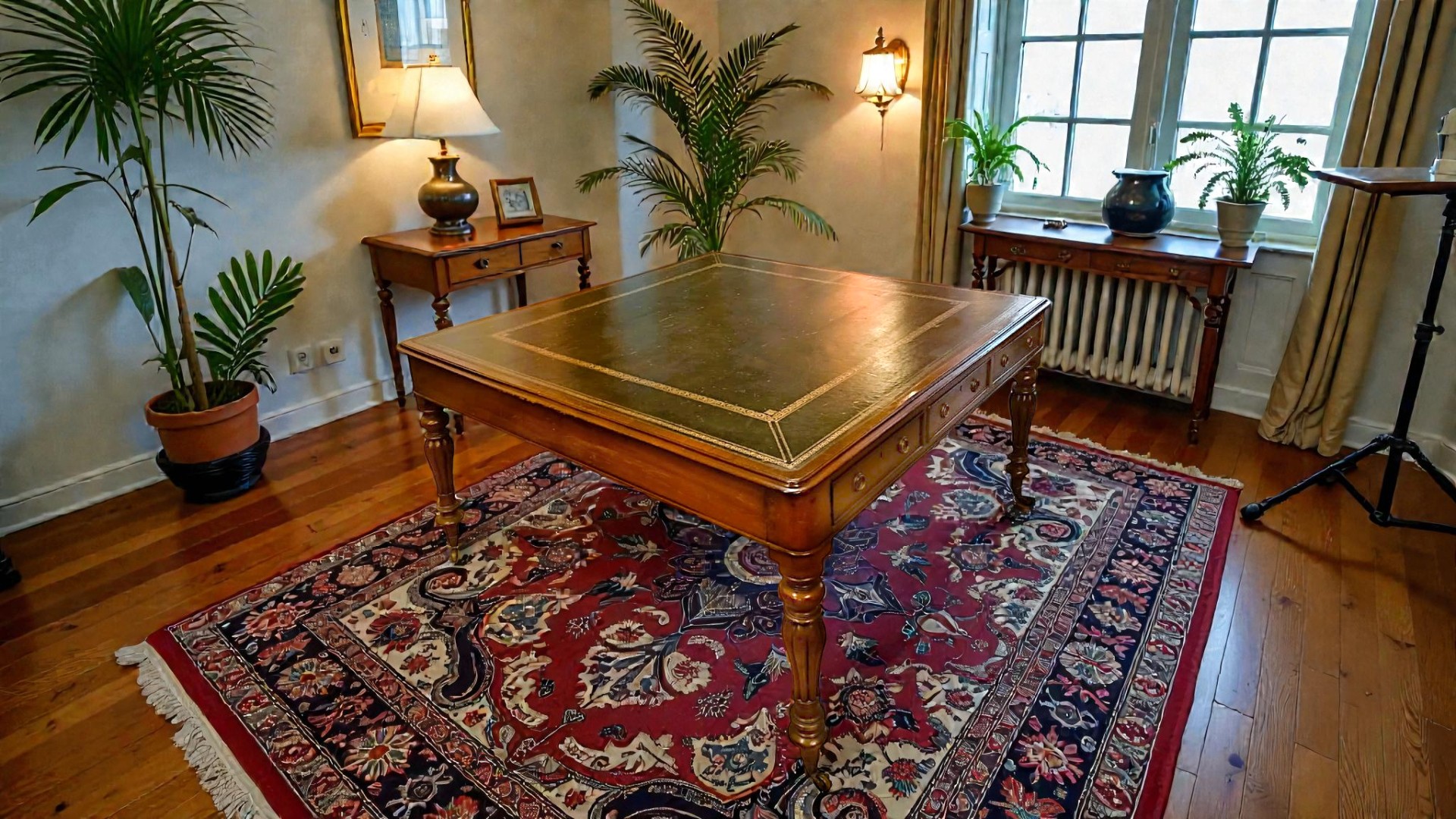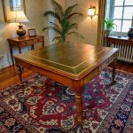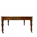 Si tratta di una scrivania antica inglese, da biblioteca, imponente e di pregio, ideale per arredare con eleganza studi professionali, biblioteche o ambienti di rappresentanza.