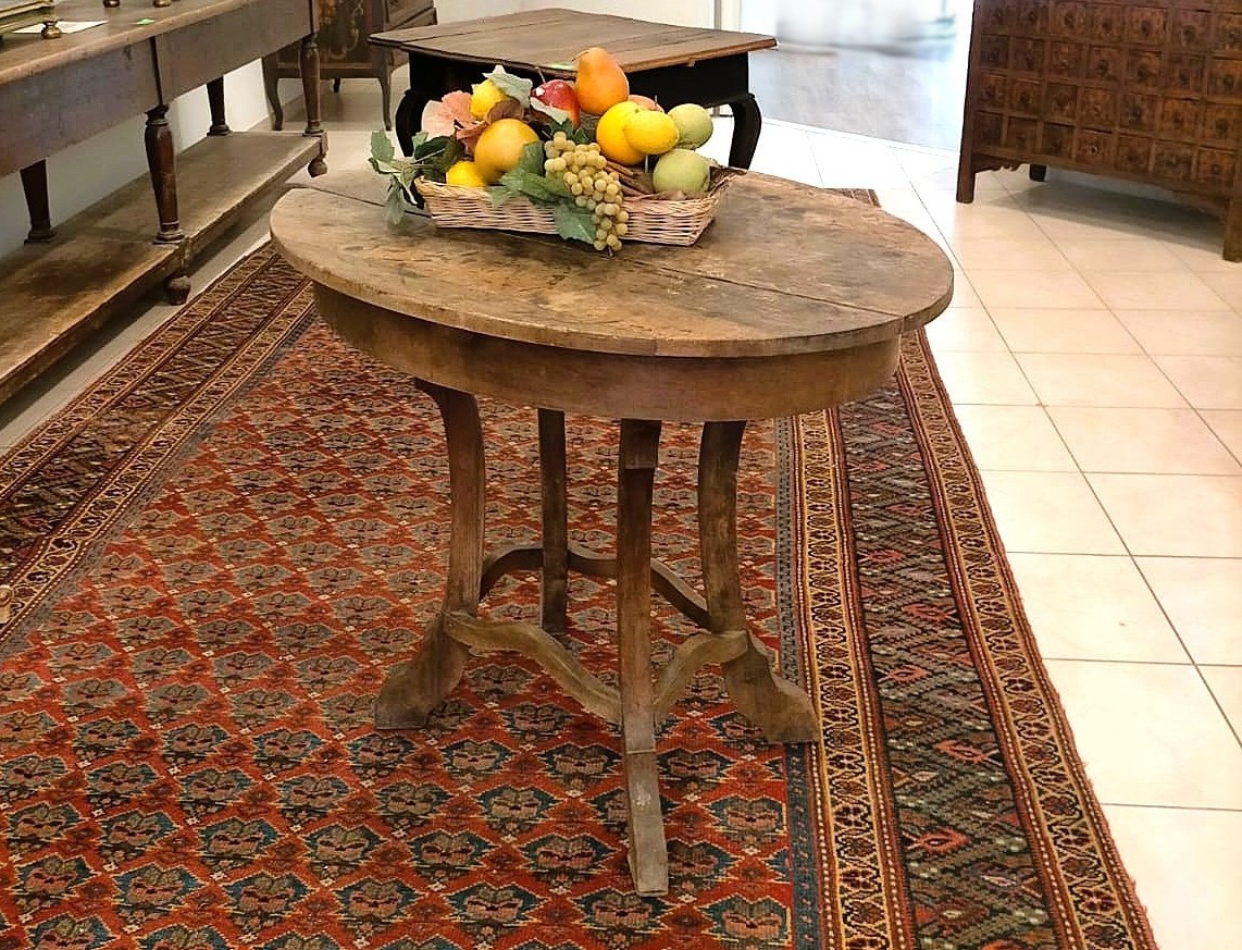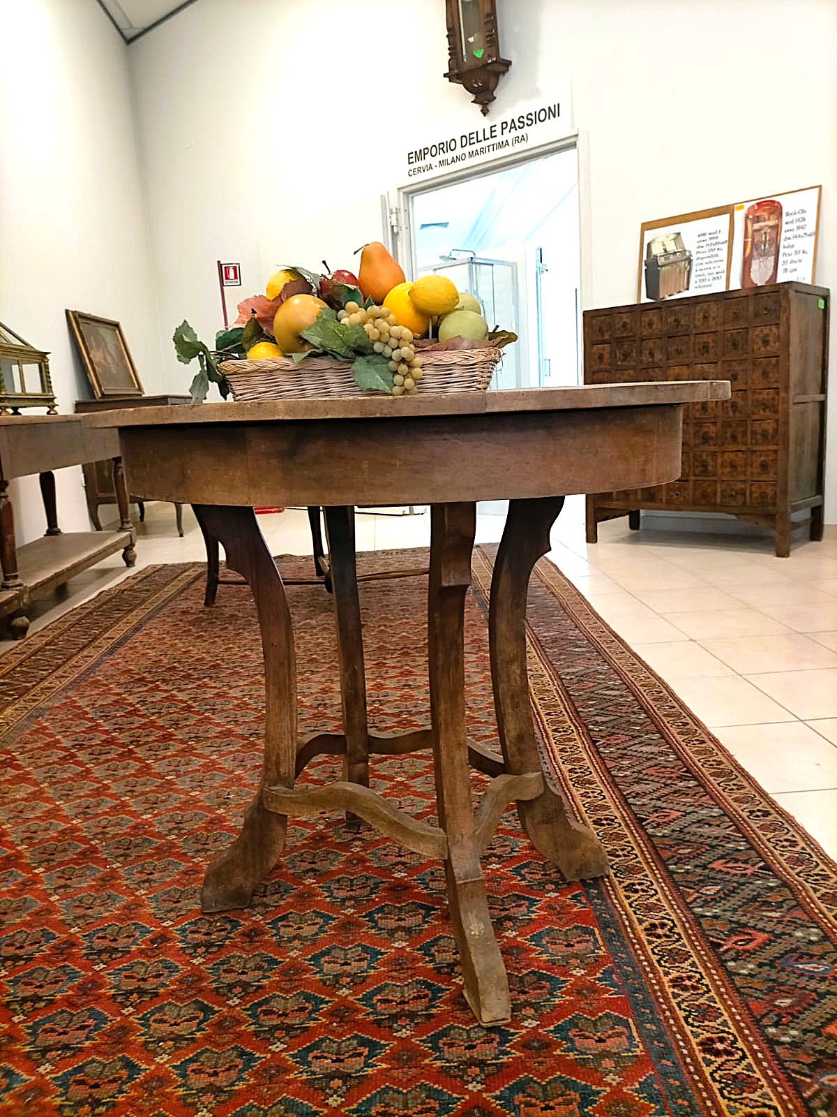 Tavolino da salotto o ingresso in noce massello dei primi del Novecento, con una linea autenticamente prima-novecentesca, evidente nelle proporzioni armoniose e nel gusto decorativo dell’epoca. La forma ovale e il design Art Nouveau lo rendono un pezzo ricco di personalità, capace di dare carattere sia ad ambienti classici che moderni.