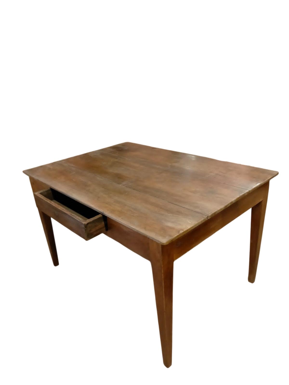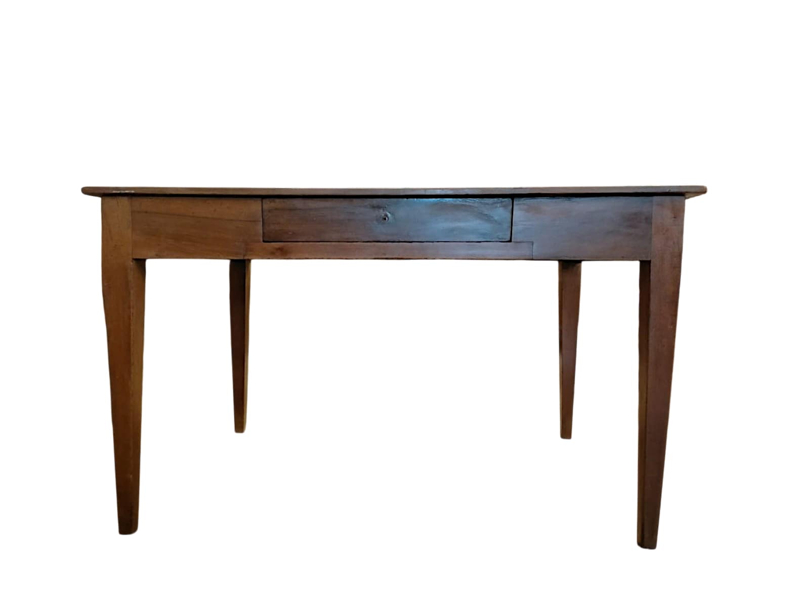 Tavolo Luigi XVI in noce massello dotato di cassetto frontale, ideale anche come scrittoio o tavolo da lettura.