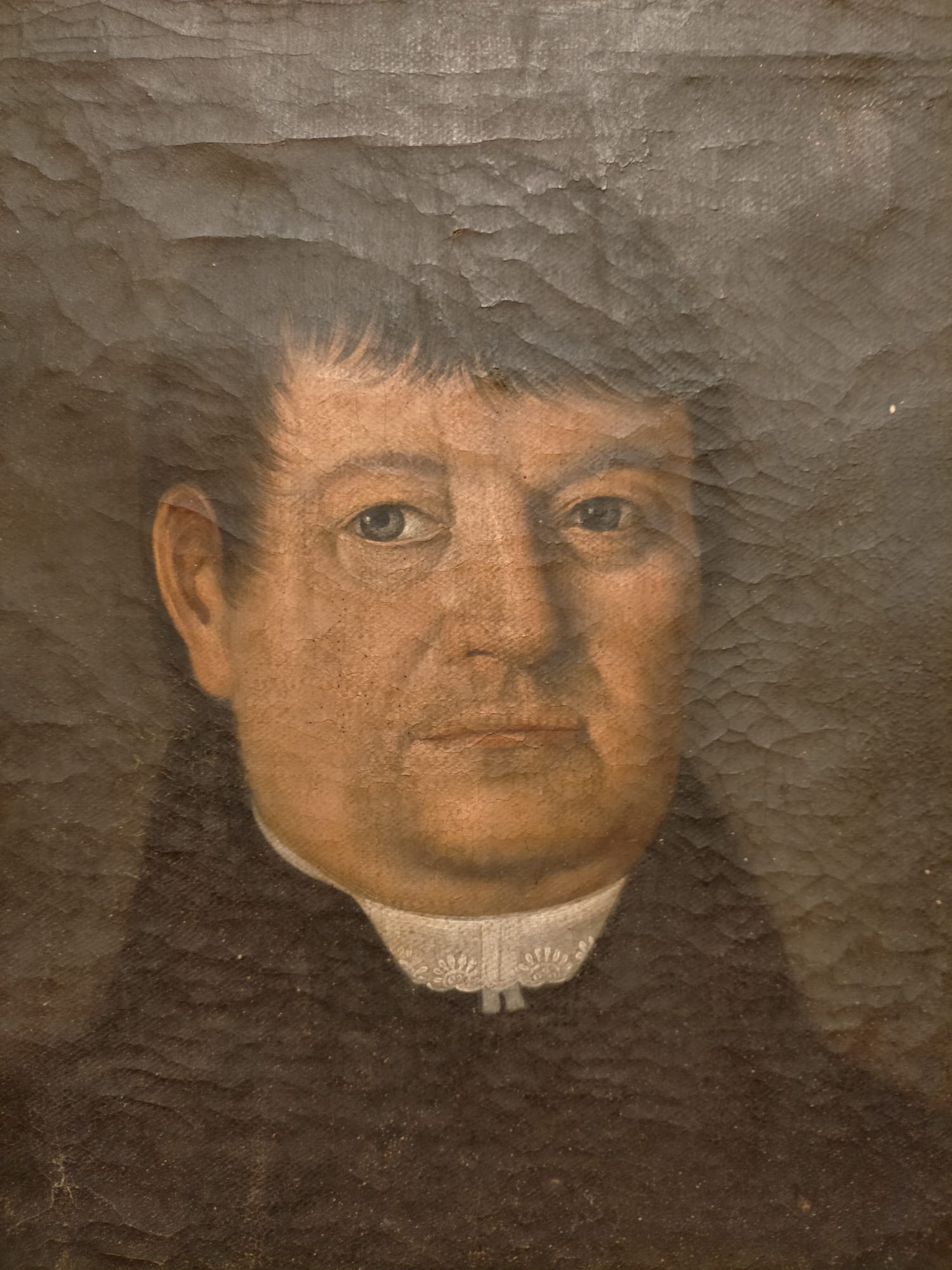 Ritratto maschile di epoca romantica, attribuibile ad un artista germanico. L’origine geografica dell’opera è suggerita dalla firma dell’autore apposta sul retro, “Gemahlen von Johann Worlituck” (tradotto : dipinto da Johann Worlituck). Tuttavia, tale nome non risulta presente nei principali dizionari dei pittori europei, lasciando ipotizzare che si tratti di un pittore accademico minore, non ufficialmente censito, ma comunque dotato di notevoli capacità artistiche.